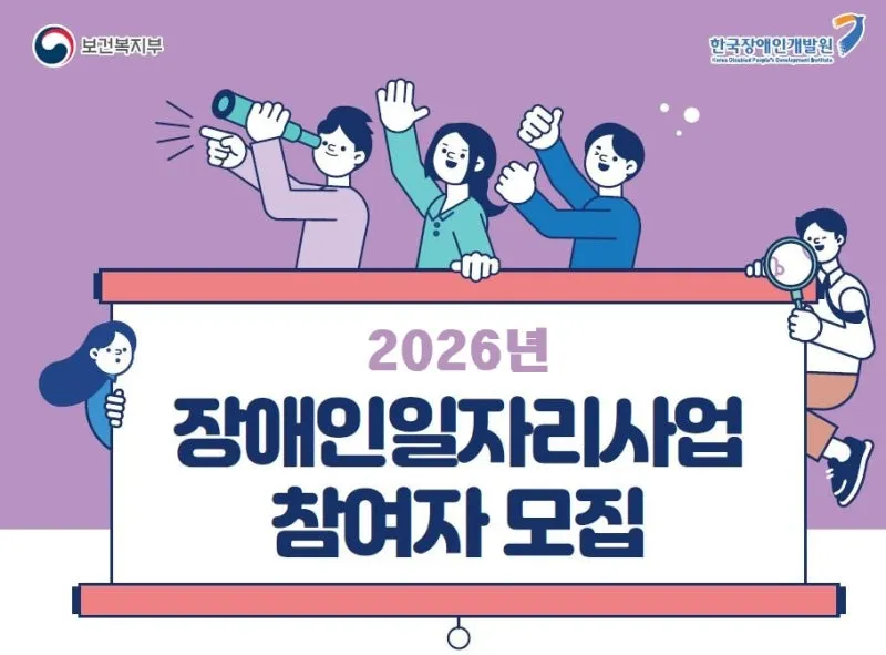 2026년 장애인일자리사업 일반형(전일제 및 시간제) 참여자 모집 "신청자격·방법 안내"