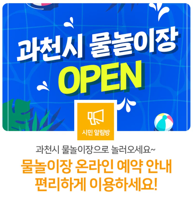 「과천시 물놀이장」 온라인 예약으로 편리하게 이용하세요~