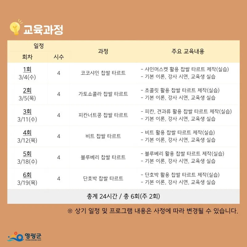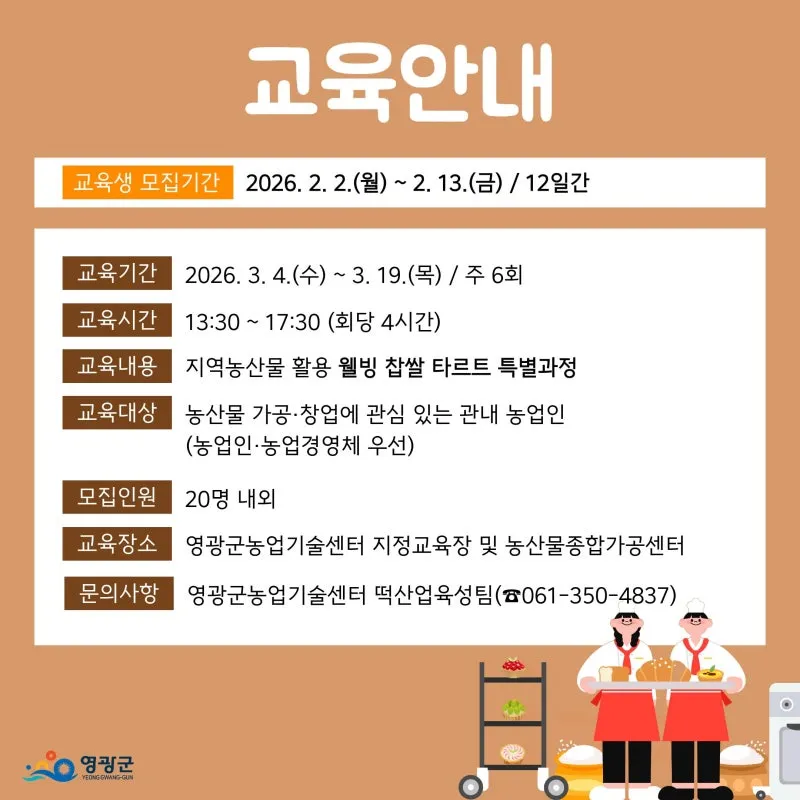 영광군민을 위한, 2026년 지역농산물 활용 디저트 개발 교육