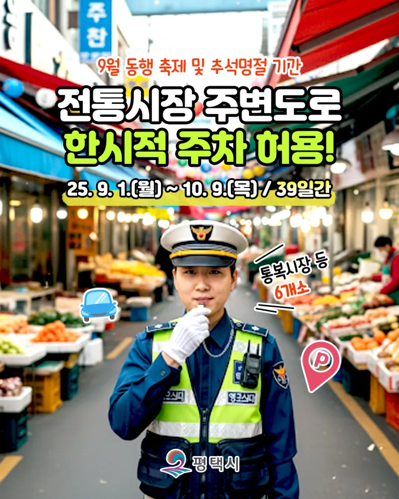 추석 맞이 평택 전통시장 주변도로 10월 9일까지 한시적 주차 허용!