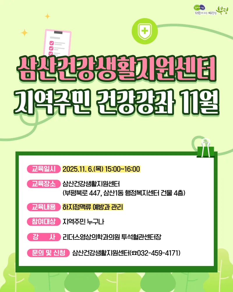삼산건강생활지원센터 ·청천보건지소 11월 지역주민 건강강좌 안내