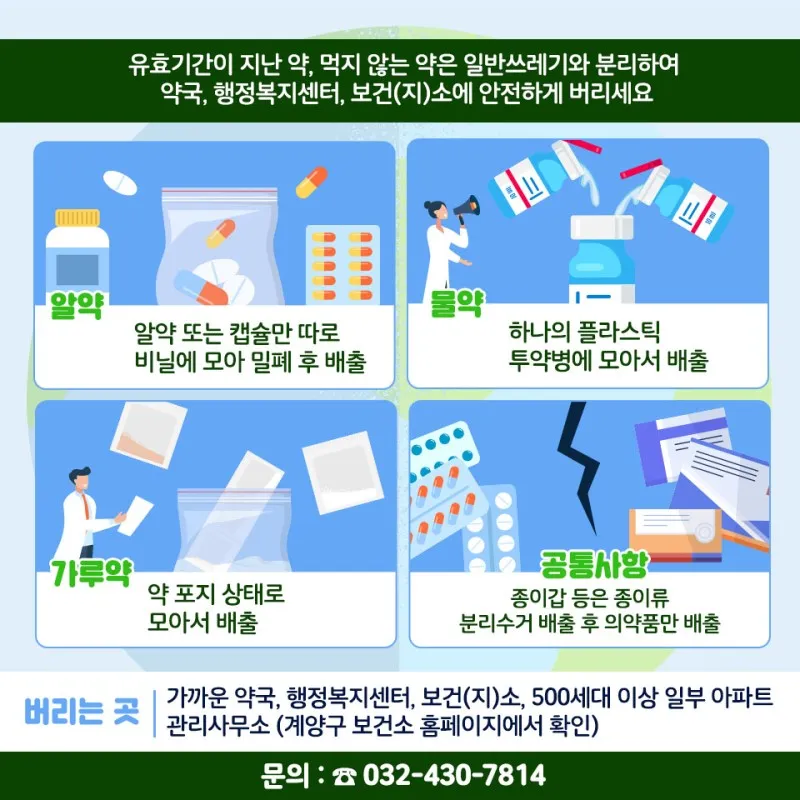 약국, 행정복지센터, 보건(지)소에 안전하게 버리세요!