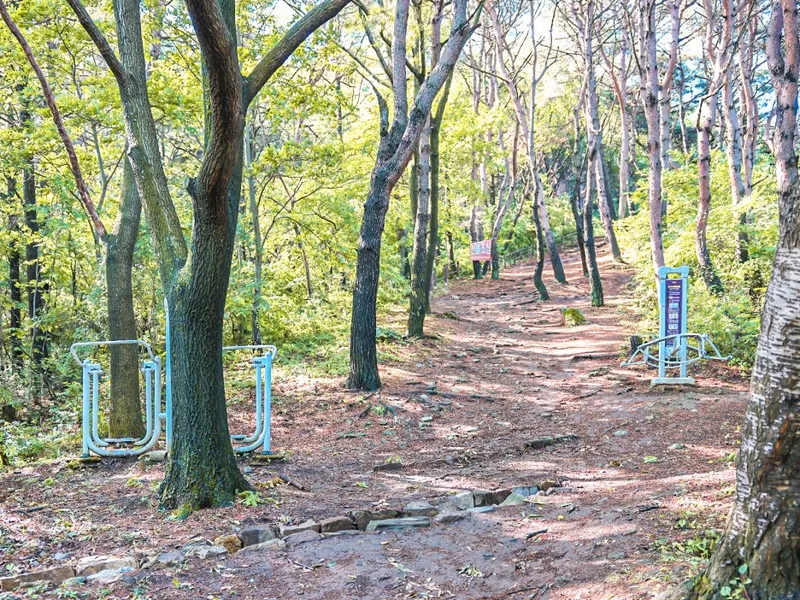 중간중간 맨손 체조 운동기구들이 놓여 있어서 뭉친 근육을 풀어줄 수도 있었는데요. 산책로를 따라 흙길을 걷다 보면 발끝에 바스락거리는 낙엽 소리까지 들려 산책의 기쁨을 더해주었어요.