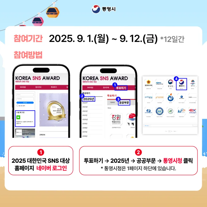 통영시와 함께 하는 대한민국 SNS대상 투표 이벤트