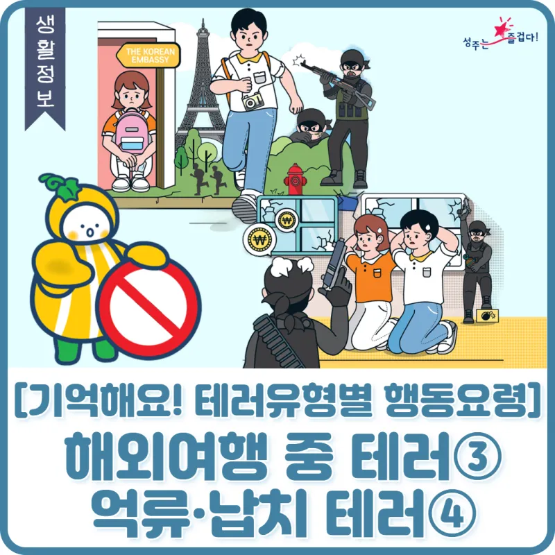 #성주 #성주군 #성주군청 #성주는즐겁다 #대한민국정책브리핑 #정책브리핑 #국무조정실 #테러예방 #테러예방수칙 #테러유형별행동요령 #해외여행중테러 #억류납치테러 #억류테러 #납치테러 #테러대처법 # #국가정보원 #111 #경찰청 #112 #테러의심대응요령 #테러대응요령 #테러에안전지대는없습니다 #외교부영사콜센터 #0232100404
