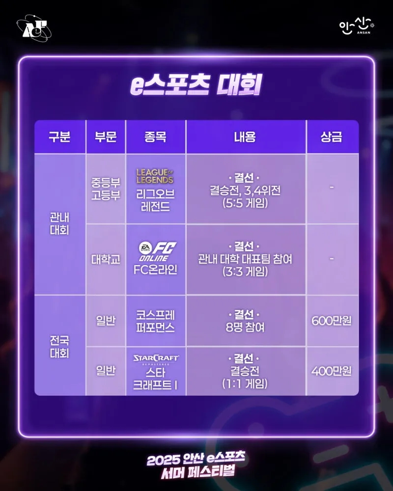 2025 안산 e스포츠 서머 페스티벌이 찾아옵니다! 🎮🔥