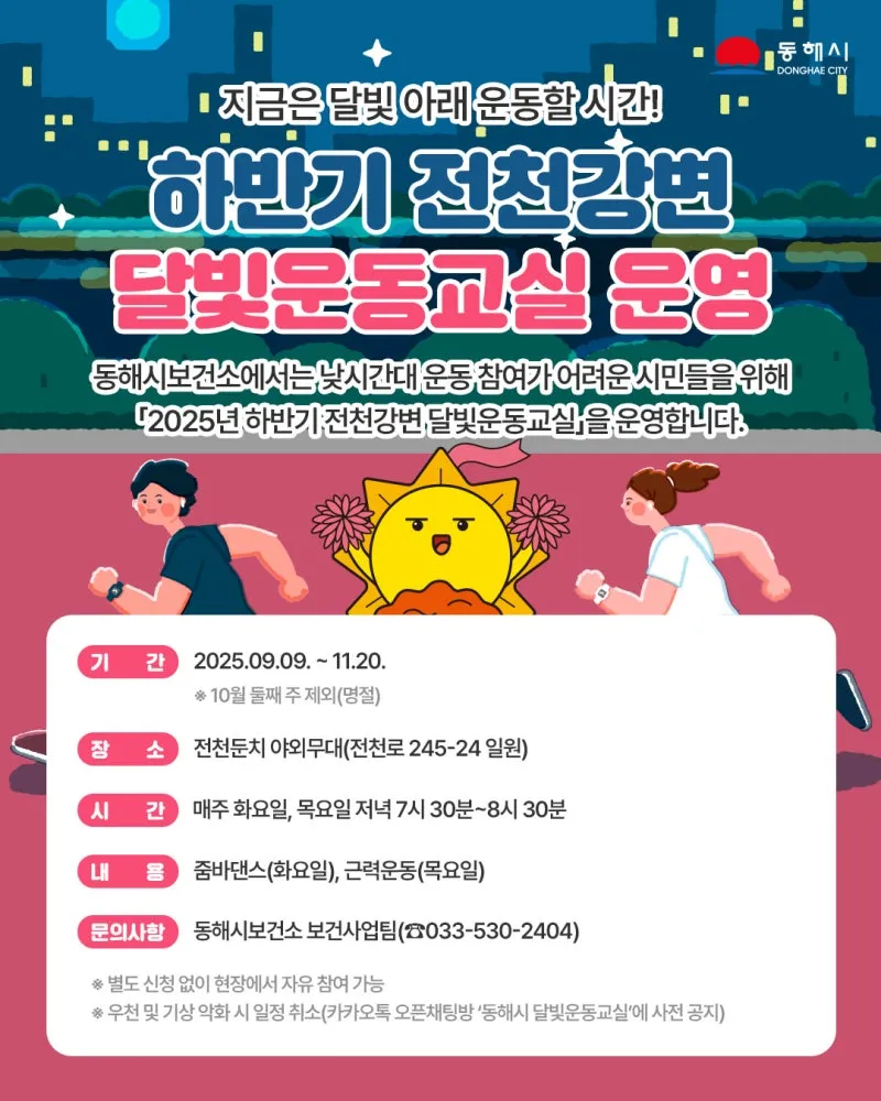 ※ 우천 및 기상 악화 시 일정 취소(카카오톡 오픈채팅방 ‘동해시 달빛운동교실’에 사전 공지)