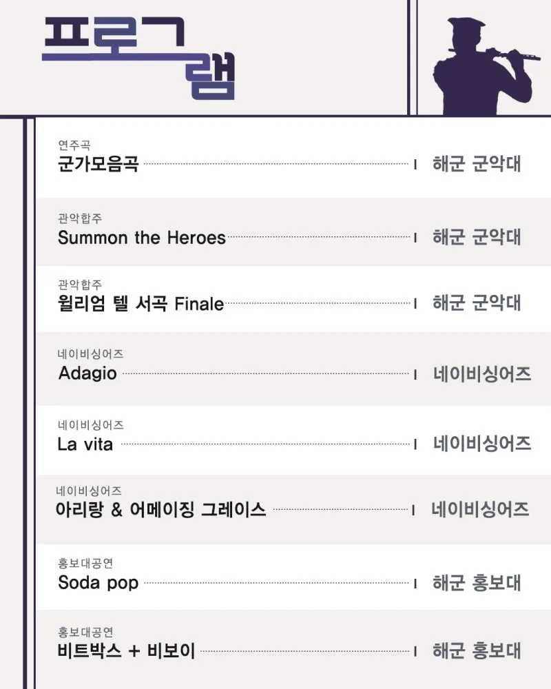 • 해군 군악대 : 군가 모음곡, Summon the Heroes, 윌리엄 텔 서곡 Finale