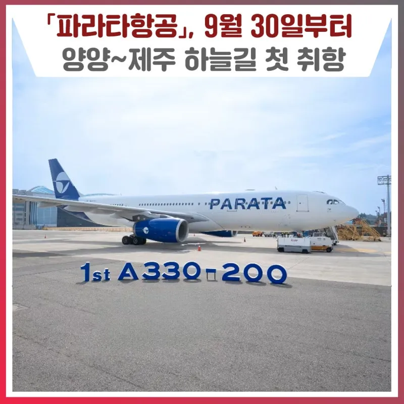 Welcome Parata Air! 「파라타항공」, 9월 30일부터 양양~제주 하늘길 첫 취항!