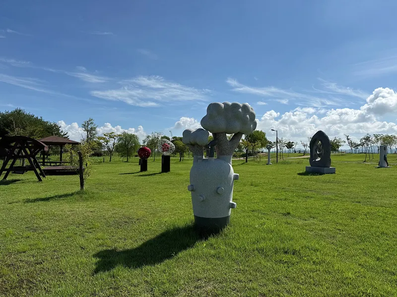 산책로를 따라 걸으면 초록 잔디 위에 놓인 조형물들이 눈에 들어오는데요. 자연과 예술이 어우러진 풍경을 감상할 수 있습니다.