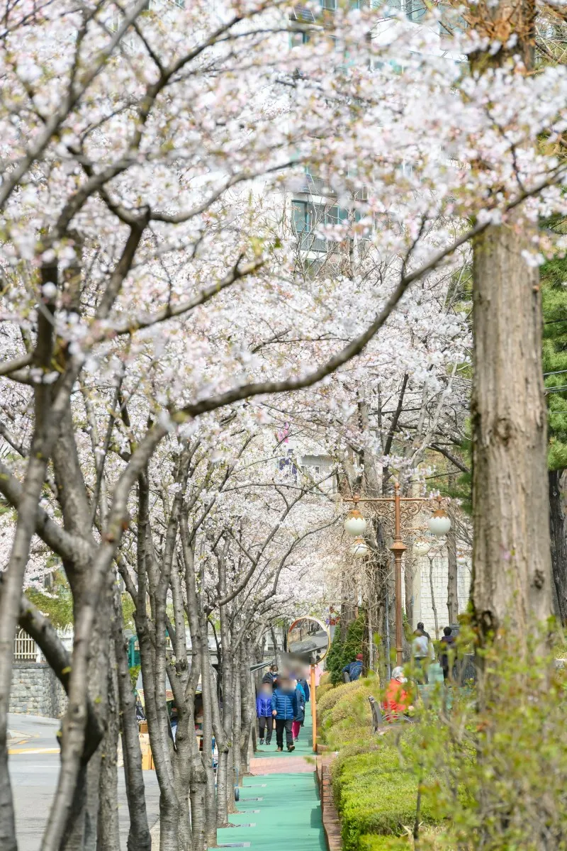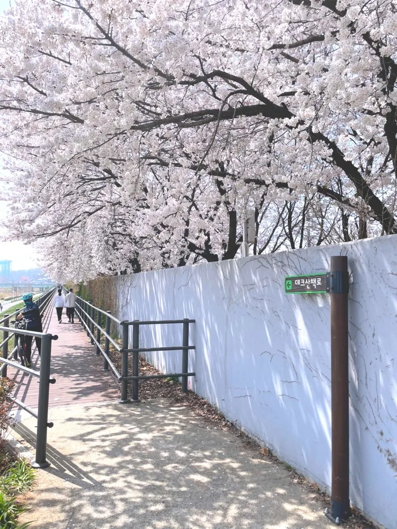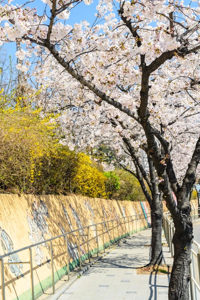 다음으로 소개해드릴 곳은 오솔길 공원입니다. 이곳은 저만 알고 싶은 숨겨진 동네 명소인데요! 이곳은 벽화를 따라 활짝핀 벚꽃 풍경이 아름다운 곳입니다.
