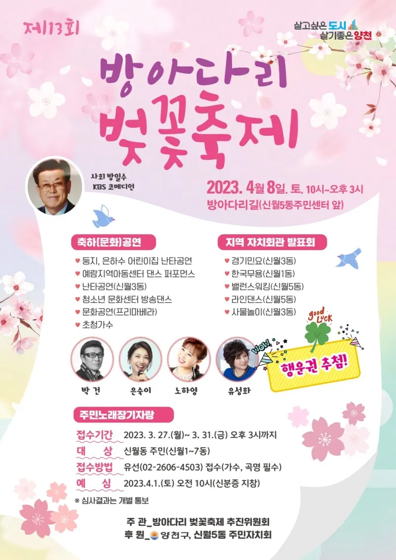 다가오는 4월 8일 '제13회 방아다리 벚꽃축제'가 방아다리길에서 열린 예정인데요.