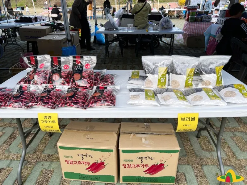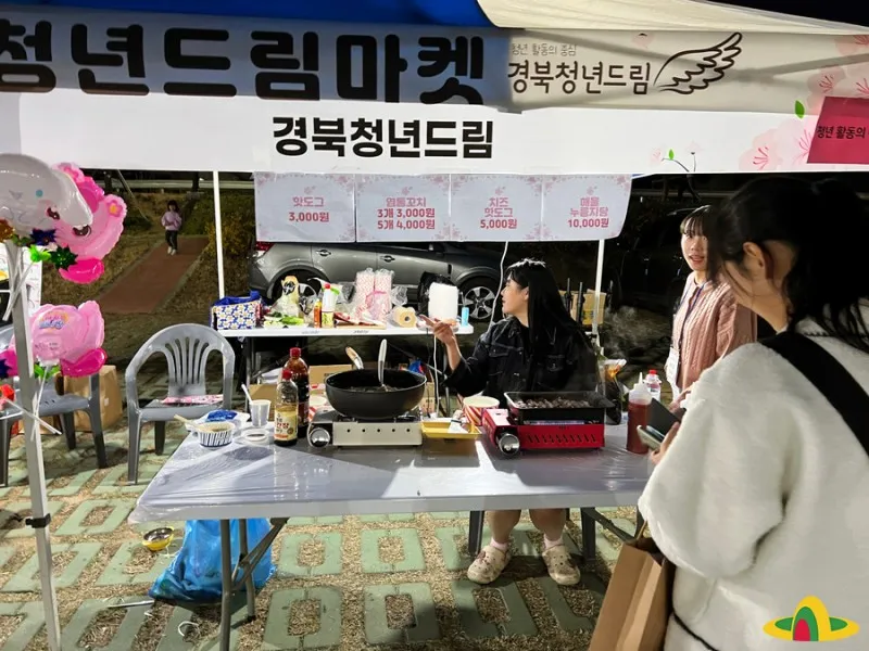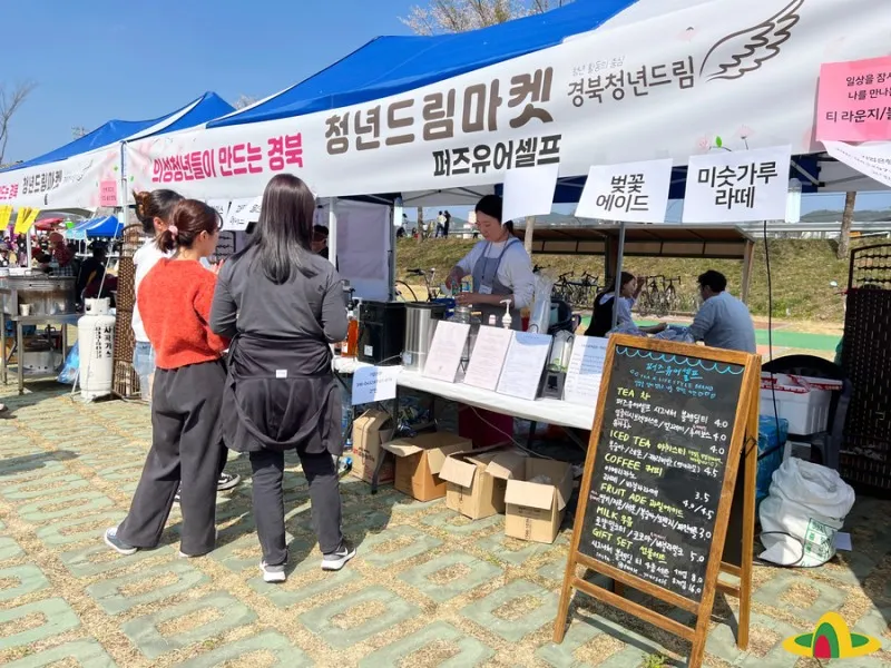 오늘 이곳에는 경북 청년드림마켓에서 다양한 물품을 판매하고, 스탬프 투어 이벤트, 먹거리장터, 푸드트럭, 의성읍 동네마켓 등 다양한 먹거리와 즐길 거리가 준비되어 있습니다.