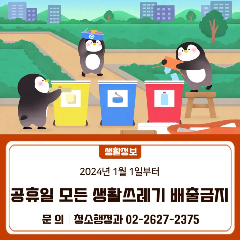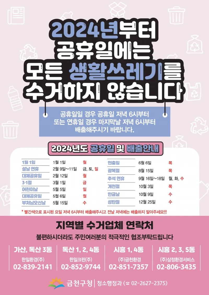 2024년 1월 1일부터 공휴일 생활쓰레기 미수거