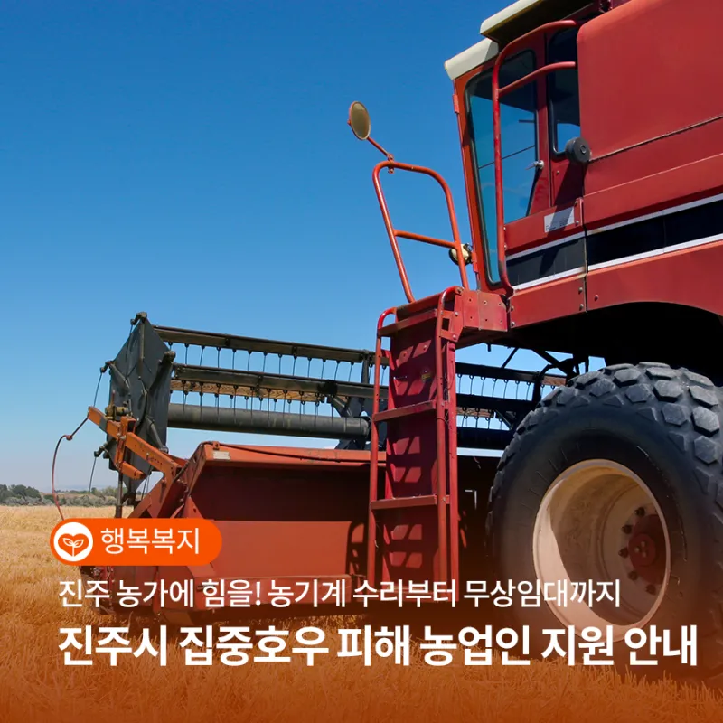 진주 농가에 힘을! 농기계 수리부터 무상임대까지 진주시 집중호우 피해 농업인 지원 안내