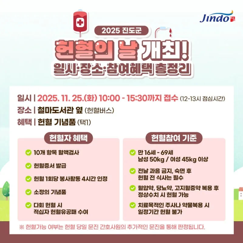 2025 진도군 헌혈의 날 개최! 일시·장소·참여혜택 총정리
