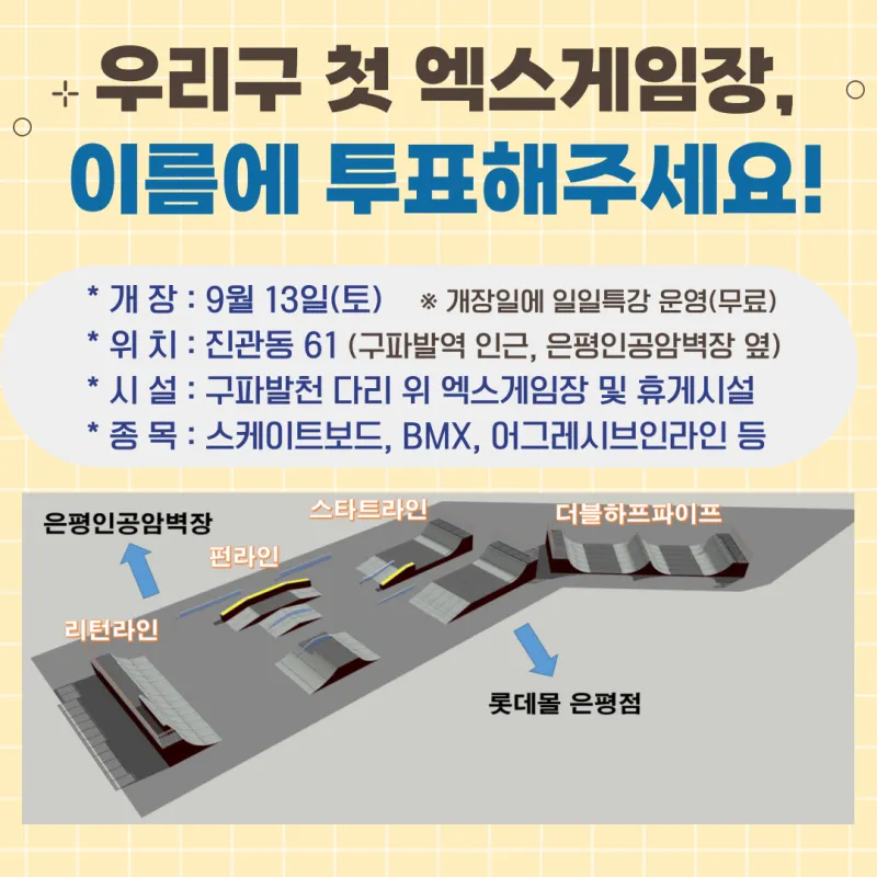 은평구 첫 공공 엑스게임장 명칭 선정 투표에 참여해 주세요!️(~8/27)