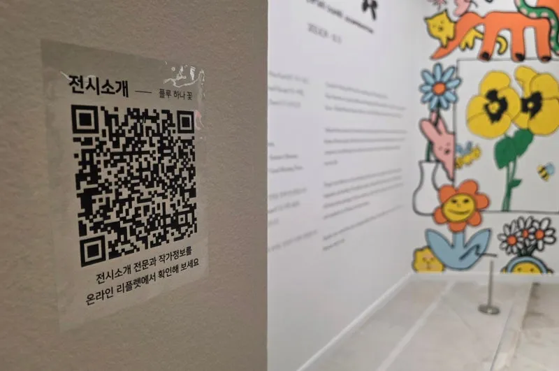 전시장 벽에 부착된 QR을 카메라로 인식시키면 작가 설명과 작품들이 나와요.