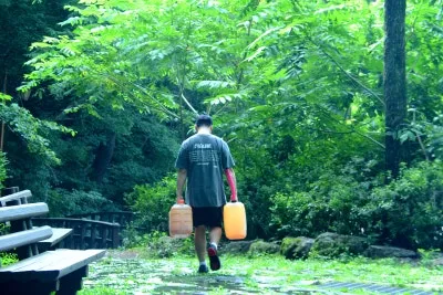동반해서 다량으로 물을 받아 가정에서 식수와 밥 짓는 용도로 사용하고