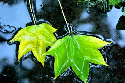 푸른 단풍잎이 약수에 젖어 더욱 운치가 있어 보입니다.