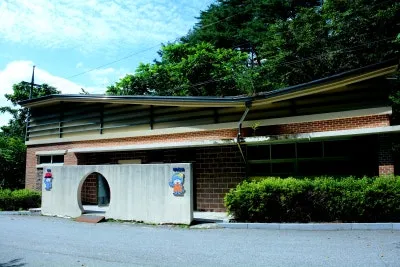 숲속에 깔끔히 관리된 화장실이 먼저 눈에 들어옵니다.