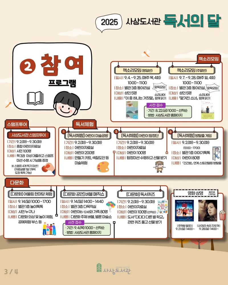 2025년 사상도서관 「독서의 달」 프로그램 안내