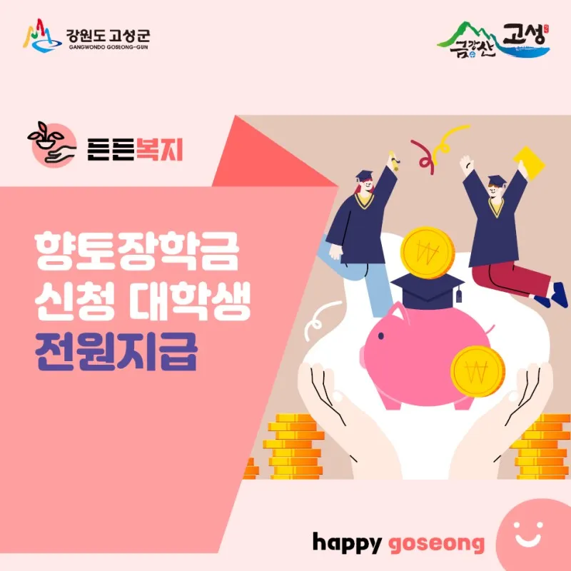 고성향토장학금 신청 대학생, 전원 장학금 드려요.