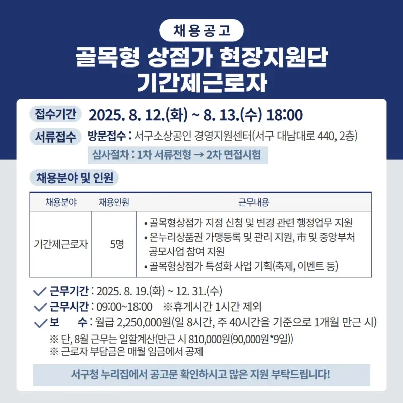 골목형 상점가 현장지원단 기간제근로자 채용 공고