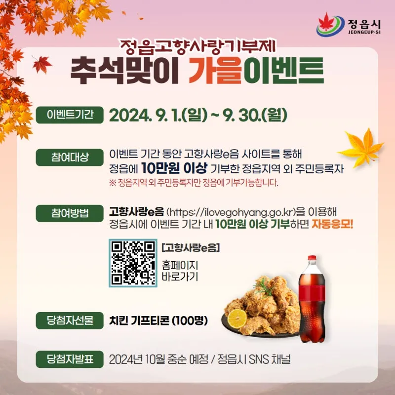정읍시 고향사랑기부제 추석맞이 가을 이벤트!(~9.30.)