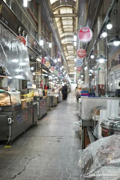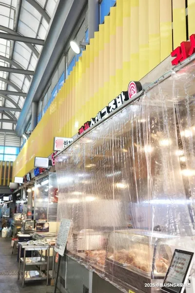 그런 전반적인 깔끔한 분위기에, 겨울철을 위한 찬바람을 막아주는 가림막이 설치되어 있었습니다. 덕분에 따뜻하게 전통시장 나들이를 즐길 수 있습니다.