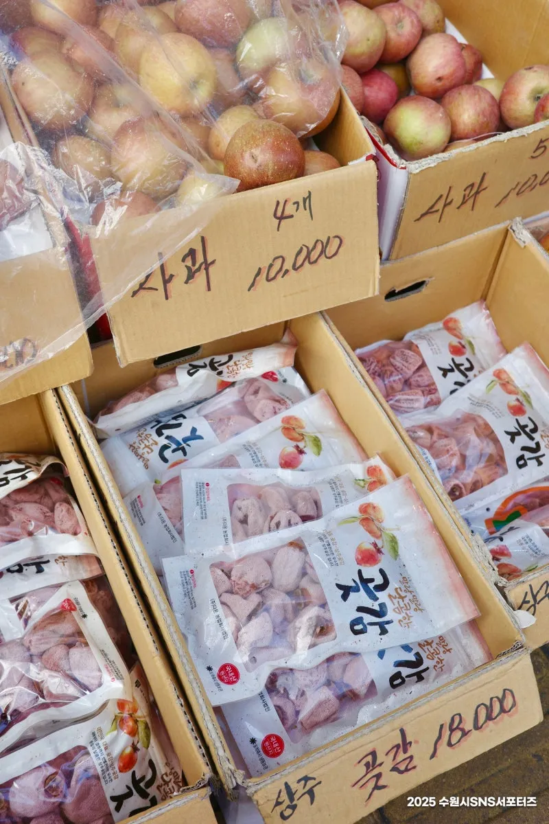가림막도, 시장에 비치된 먹거리를 보아도 겨울 느낌이 나지요?! 곶감, 귤 등등 겨울철 대표 먹거리들이 즐비해 있었습니다!