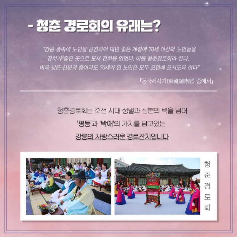 '평등'과 박애'의 가치를 담고있는 강릉의 자랑스러운 경로잔치입니다.
