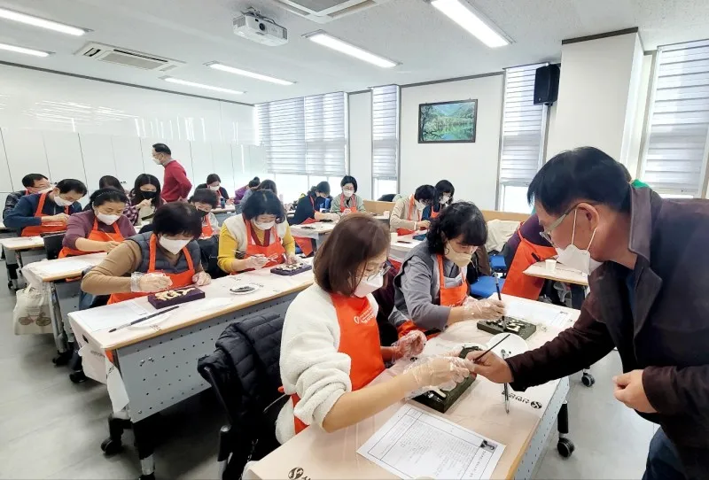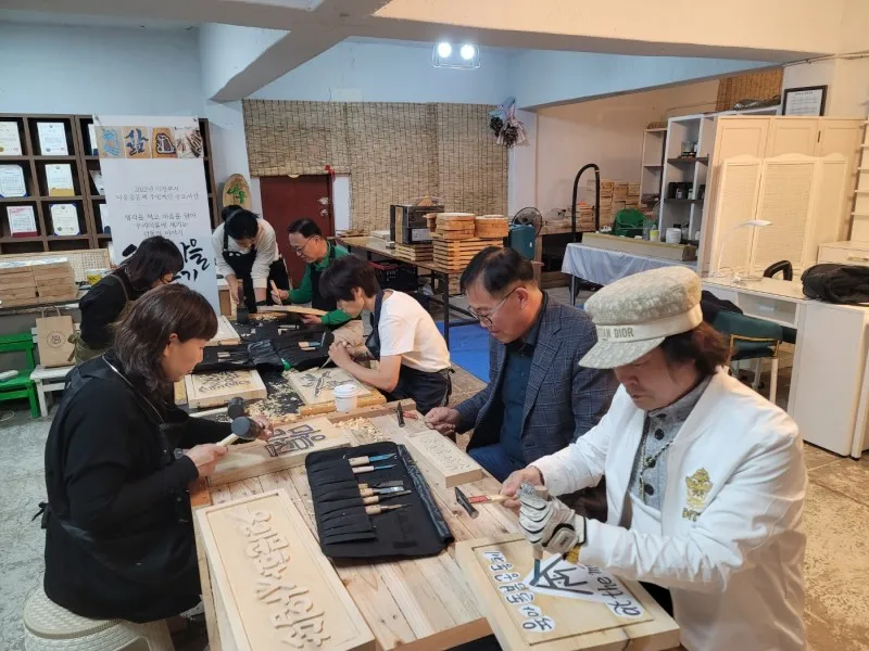 문화재단에서는 마중물 프로젝트를 통해 다양한 서각체험을 진행하였습니다. 서각이란게 오랜시간 거쳐야 숙련되긴 하지만 1~2개월만 해도 기본은 의외로 쉽고 대중적으로 다가갈 수 있거든요. 작년엔 시청에 시민갤러리 전시도 진행하였고 회원들이 전국회룡미술대전에서 서각으로 상을 받기도 했습니다.