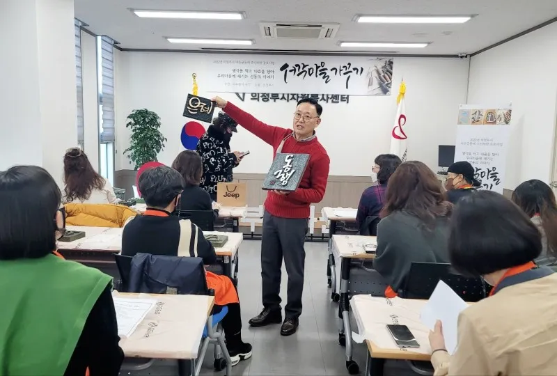서각은 팔도 아프고 힘들것이다라는 선입견이 많았는데요, 직접해보고 체험을 통해 아니구나를 알게되었어요. 의정부 시민들도 체험기회를 놓치지 말고 꼭 체험해보라고 말씀드리고 싶어요.