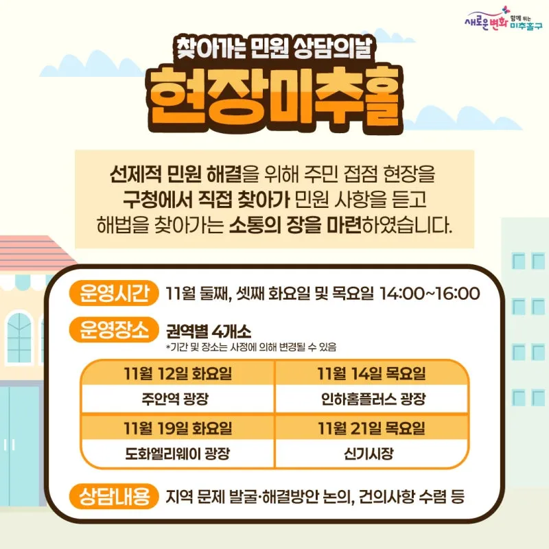 2024 찾아가는 민원 상담의 날 「현장미추홀」 운영 안내