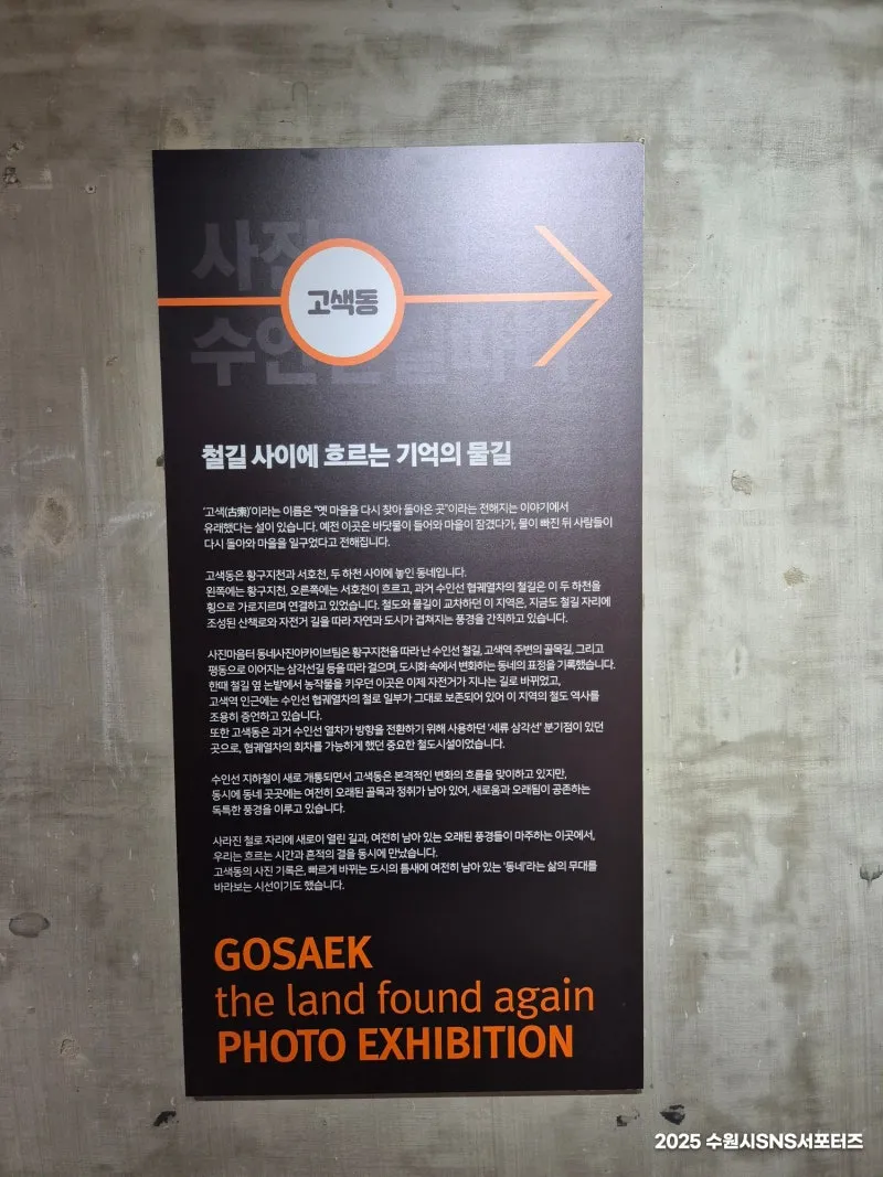 현재 고색뉴지엄 지하 전시실에서는 서수원의 역사와 지역 정체성을 담은 특별한 사진전, ‘고색 다시 찾은 땅’ 사진전이 열리고 있어 저도 다녀와 보았어요.