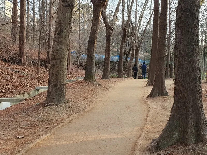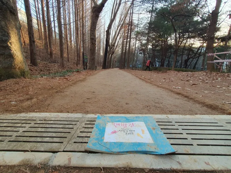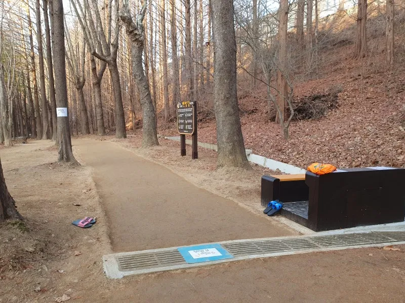 왼쪽으로는 아자 매트를 깔아놓은 산책로도 있고 중간에 쉴 수 있는 벤치도 여러 개 있습니다.