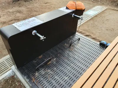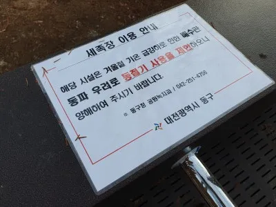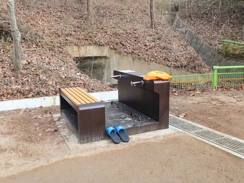 맨발 산책로 입구에는 발을 씻을 수 있는 수도 시설이 있는데, 겨울에는 동파 방지를 위해 잠가둔 상태입니다.