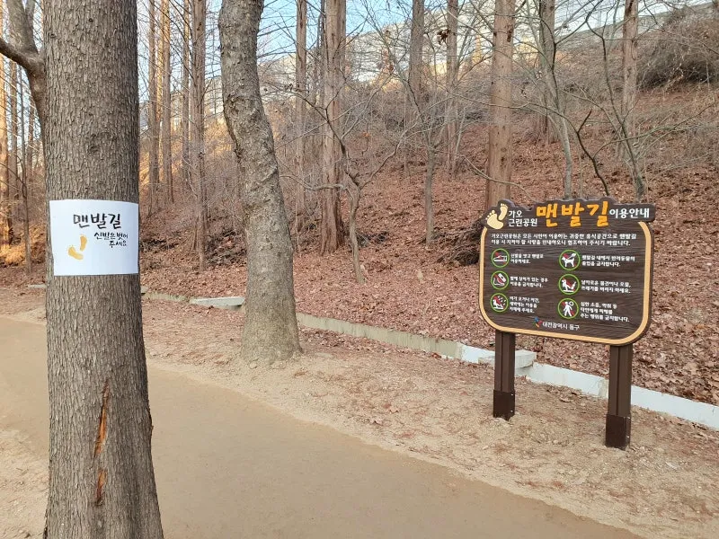 동구문화원 뒷길까지 오니 맨발 산책로가 등장했습니다.