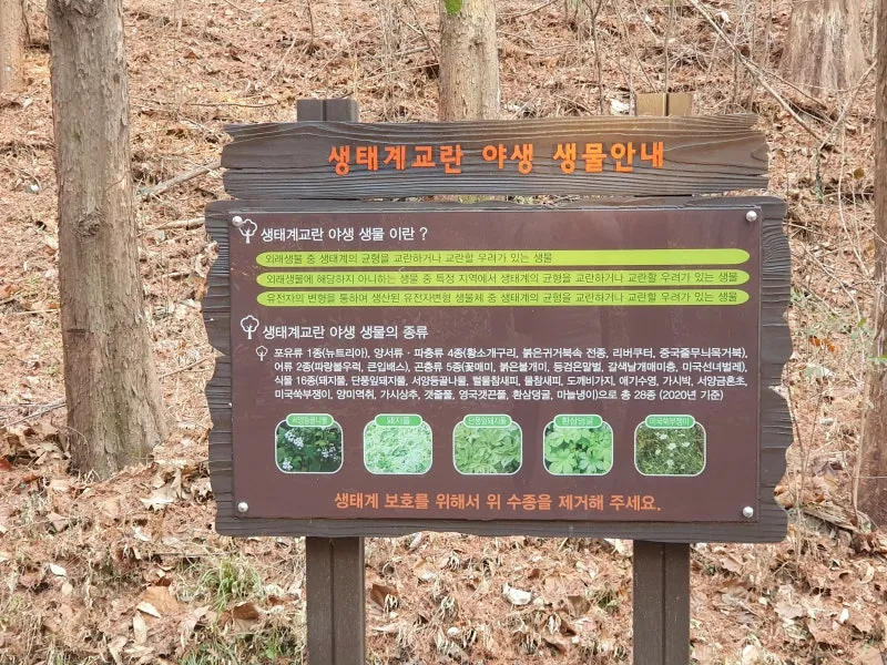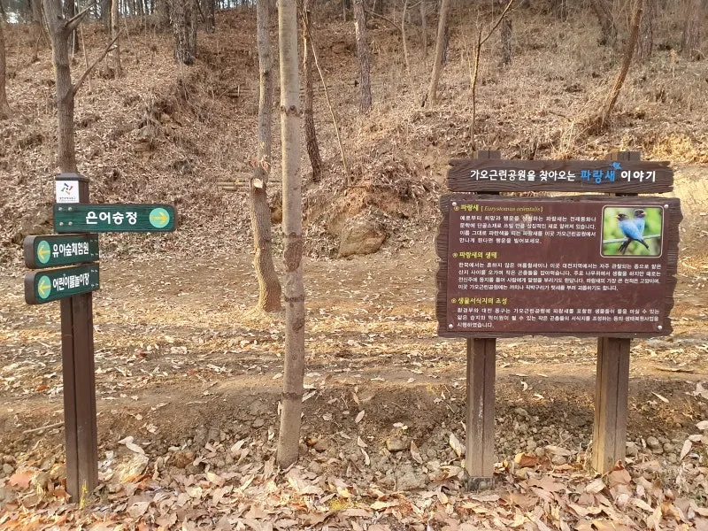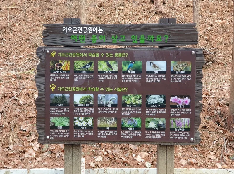길옆에는 가오근린공원에 사는 동물과 식물종을 설명하는 안내판도 있습니다.