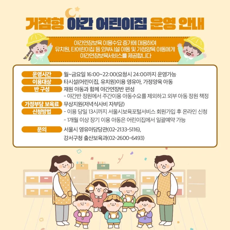 야간 연장 보육서비스 안내(거점형 야간 어린이집)