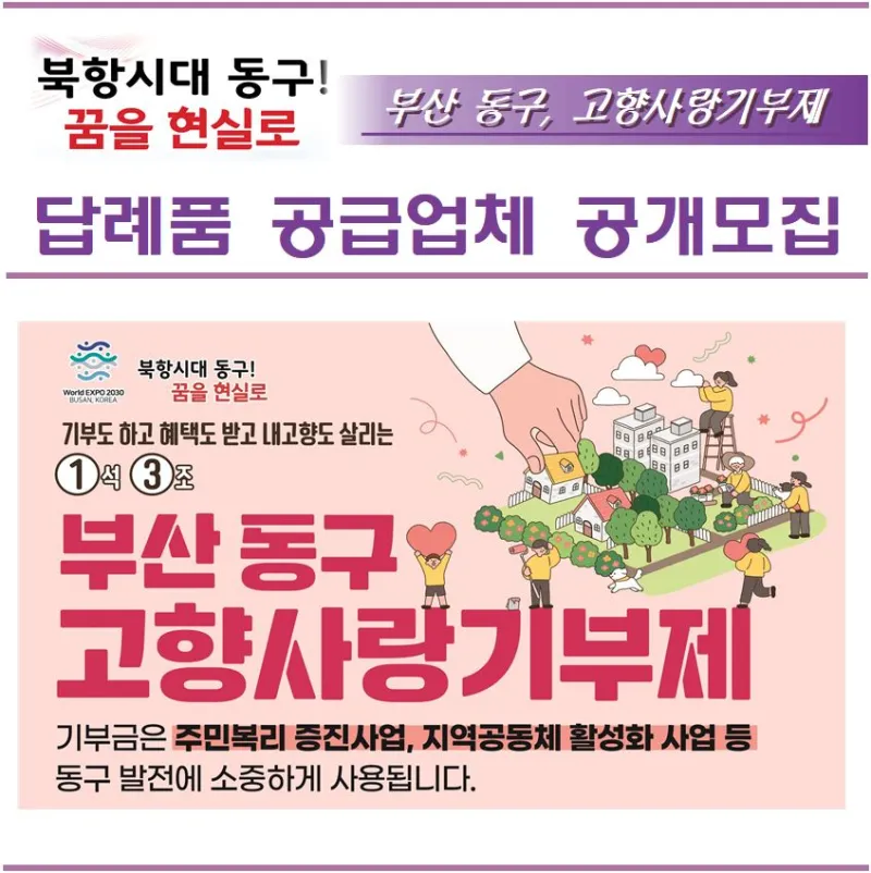 💗 공 모 명 : 부산 동구 고향사랑기부제 답례품 공급업체 3차 공모