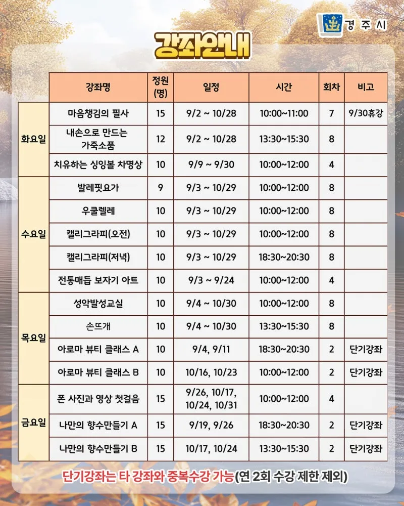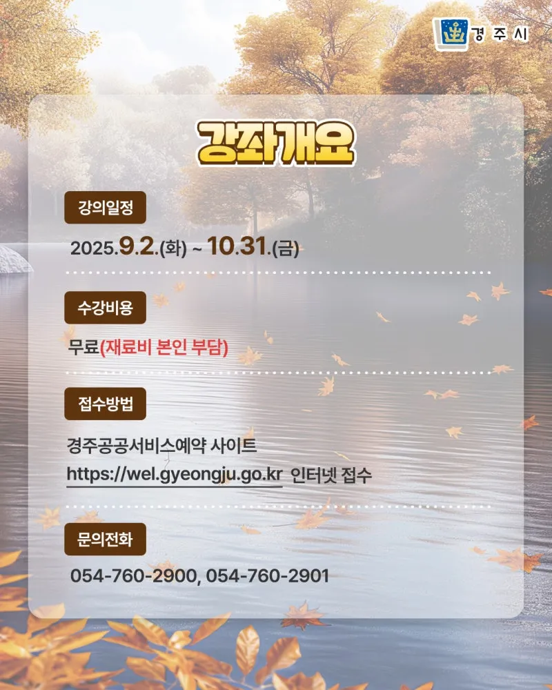 경주시 여성행복드림센터 생활문화센터 9,10월 강좌 수강생 모집
