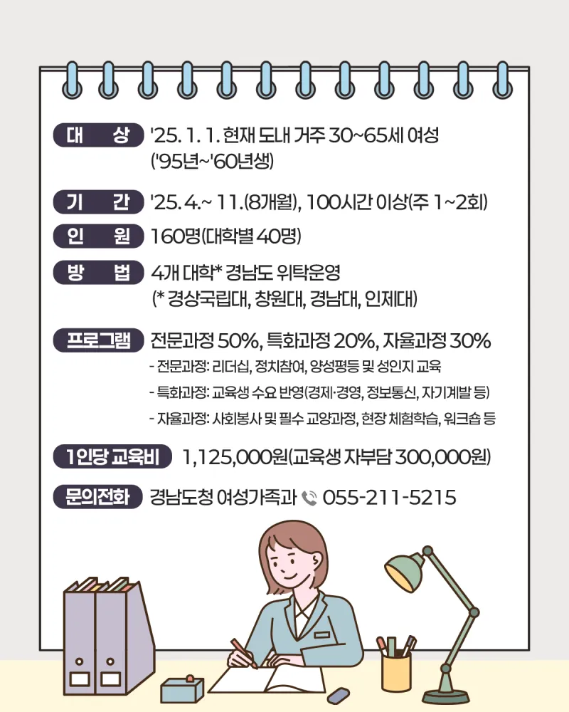 경남의 미래를 이끌어갈 여성 리더가 되고 싶다면 지금 바로 신청하세요!