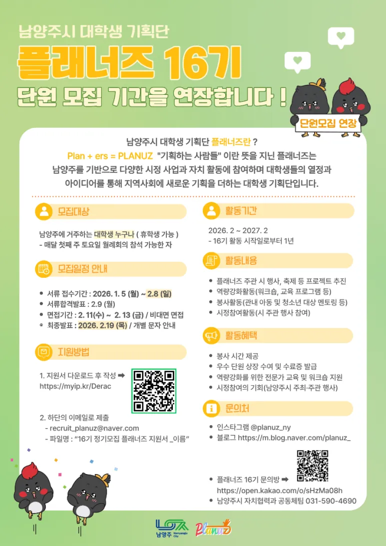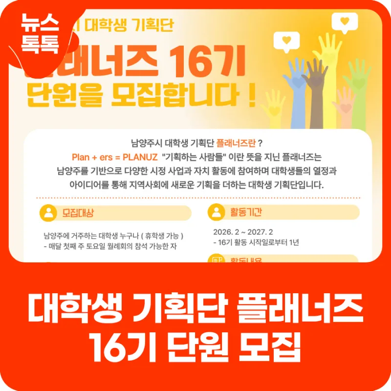남양주시 대학생 기획단 『플래너즈 16기 단원 모집』 안내(기간 연장)