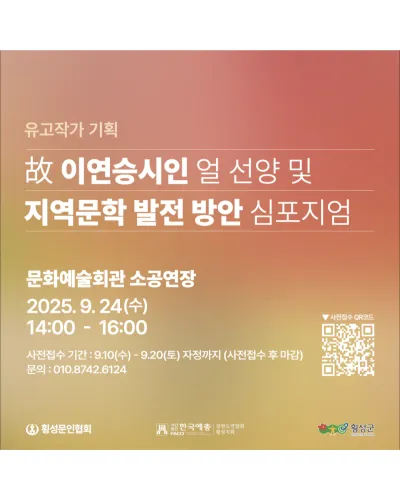 횡성문인협회 주최 故 이연승 시인 얼 선양 및 지역문학 심포지엄 안내
