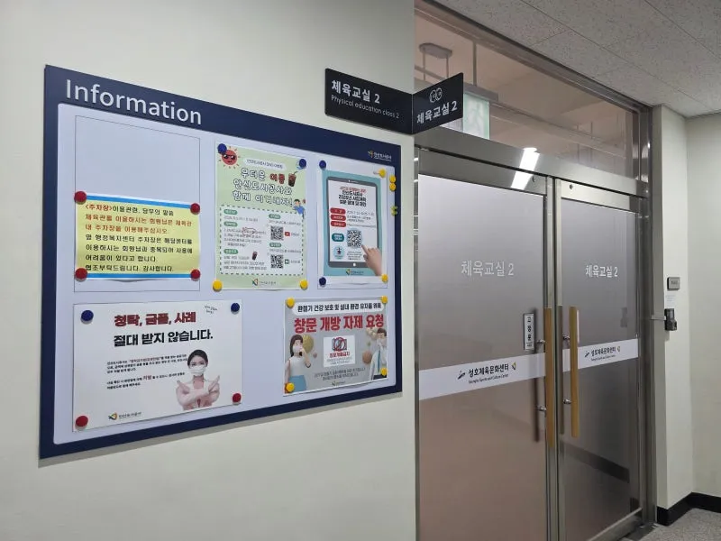 옆에는 체육교실 1과 관리사무실이 있어 프로그램
