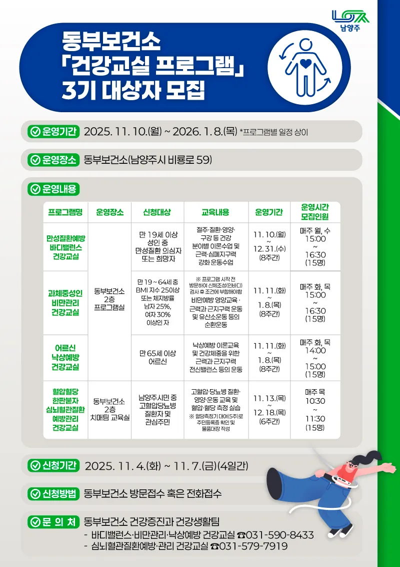 - 바디밸런스‧비만관리‧낙상예방 건강교실 ☎031-590-8433