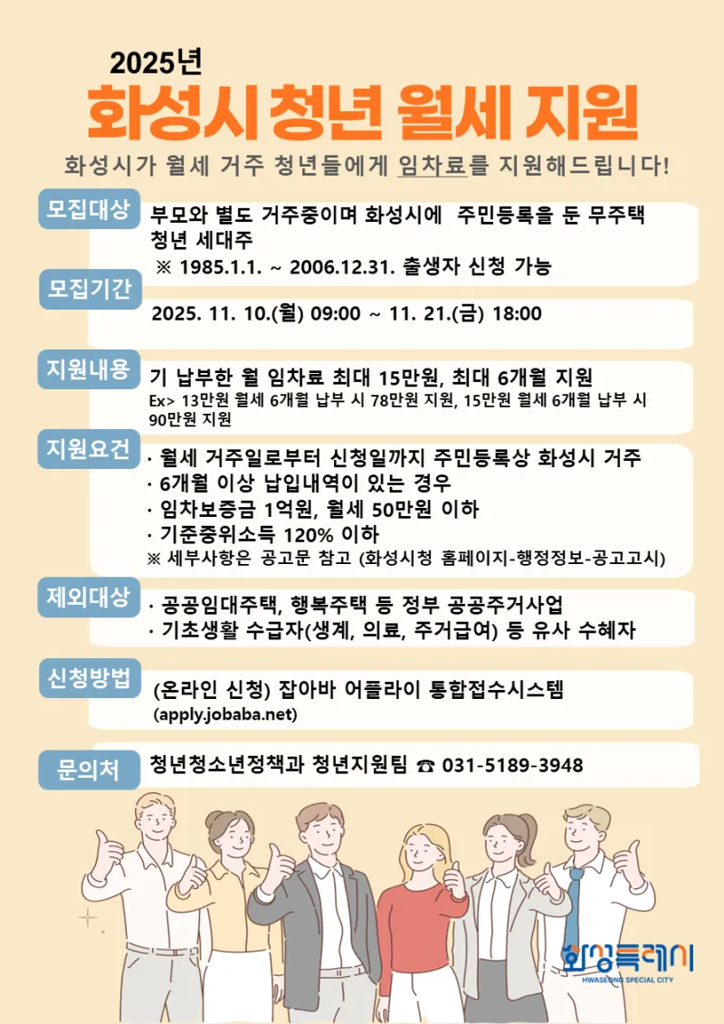 최대 15만원 지원! 놓치면 손해! <화성특례시 청년 월세지원>