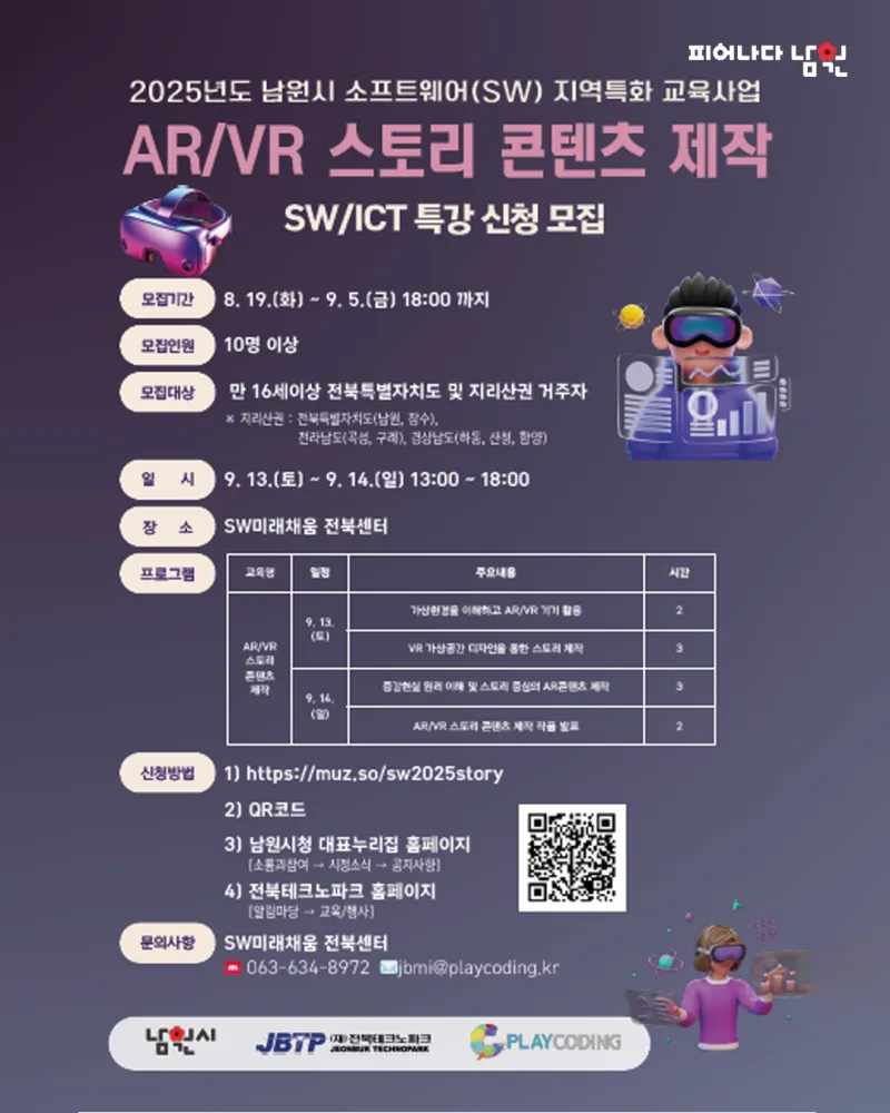 남원시 AR/VR 스토리 콘텐츠 제작 SW/ICT 특강 신청 모집
